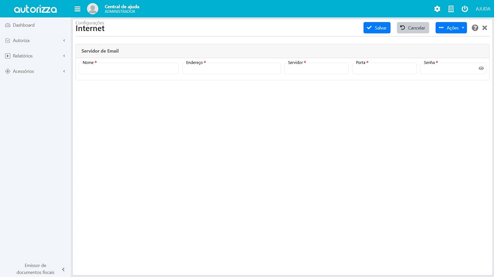 Caso você queira realizar o envio de notas fiscais (NF-e, NFC-e e NFS-e) por e-mail, é necessário configurar o servidor de e-mail dentro do sistema.