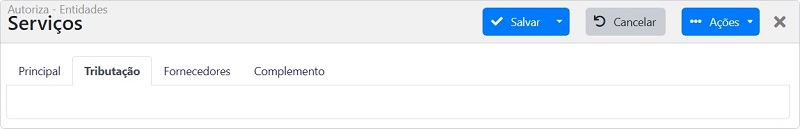 A aba tributação permanece vazia por padrão. No sistema Autorizza, a tributação é configurada automaticamente com base nas informações preenchidas na aba principal.