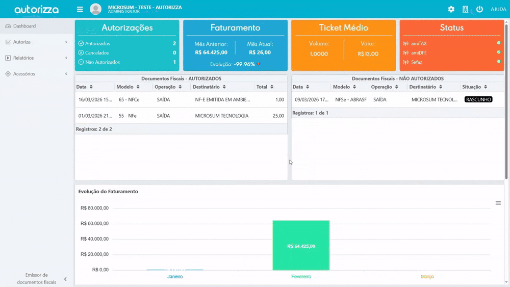 Com a solicitação de relatório realizada, você pode acompanhar o andamento acessando o menu superior. Clique no botão