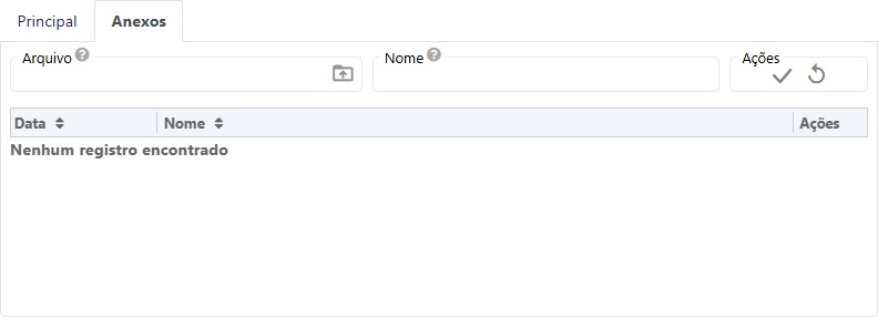 Para fazer a solicitação, o processo é dividido em duas abas: Principal e Anexos.