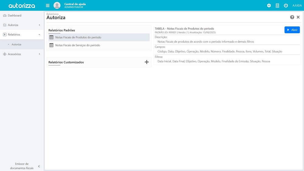 Dentro do Autorizza, além dos relatórios disponíveis no dashboard, existem também relatórios padrão que auxiliam no dia a dia da empresa.